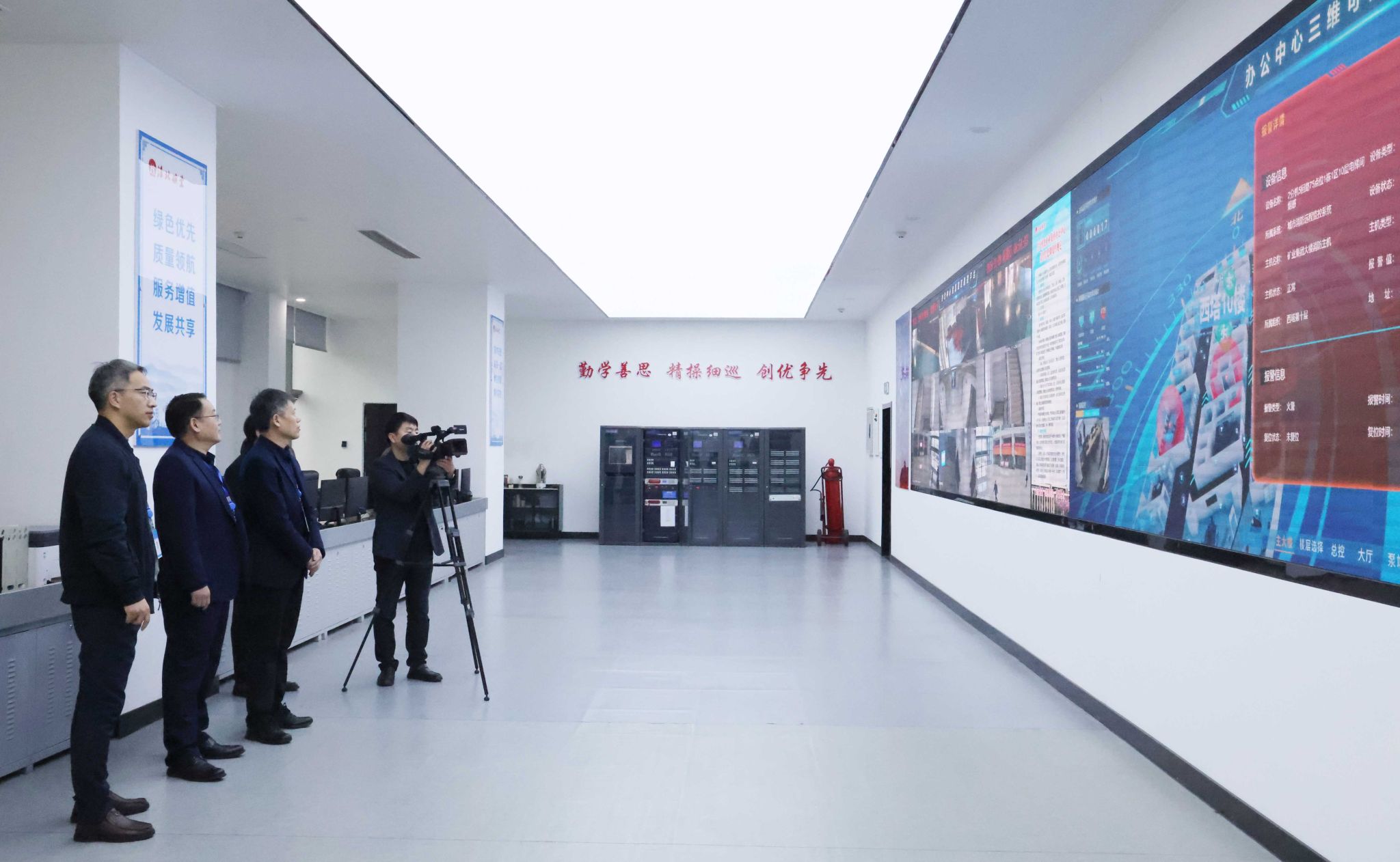 上午8時52分,演習正式開始。模擬火情設定在西塔10層,集控中心發現警報后,迅速啟動火災應急處置預案,同步上報值班領導、調派滅火組前往撲救,并模擬撥打119報警。隨即,樓內應急廣播系統啟動,播報火情信息,并下達全體人員通過步梯緊急疏散撤離的指令。